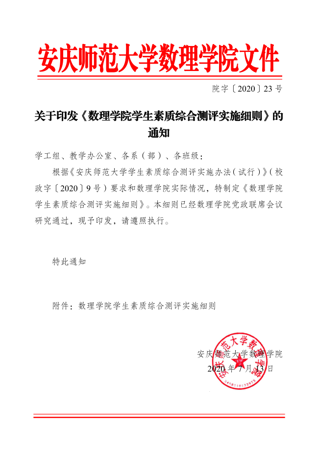 关于印发《数理学院员工素质综合测评实施细则 》 的通知