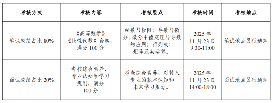 1.数理学院成立2025-2026学年转专业考核领导组,成员由数理学院领导班子成员组成,公司党委书记和经理任领导组组长。