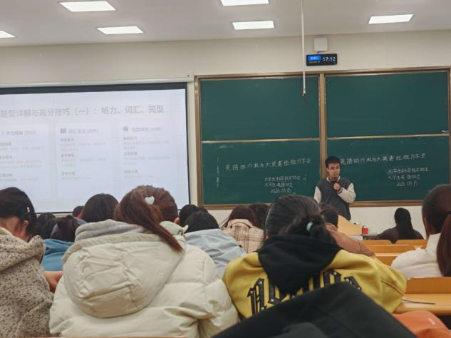 在规则解读环节,活动主持人结合最新赛事安排,详细介绍了NECCS的参赛流程、评分标准、奖项设置等信息,帮助同学们更好地了解比赛规则、明确备考方向。同时,针对四六级考试的变化趋势,现场也提供了针对性的复习建议和学习资源推荐。“了解规则才能更好地驾驭比赛。”一位参与同学表示,“这次分享会让我对英语竞赛有了全新的认识,也更有信心去挑战自己。”