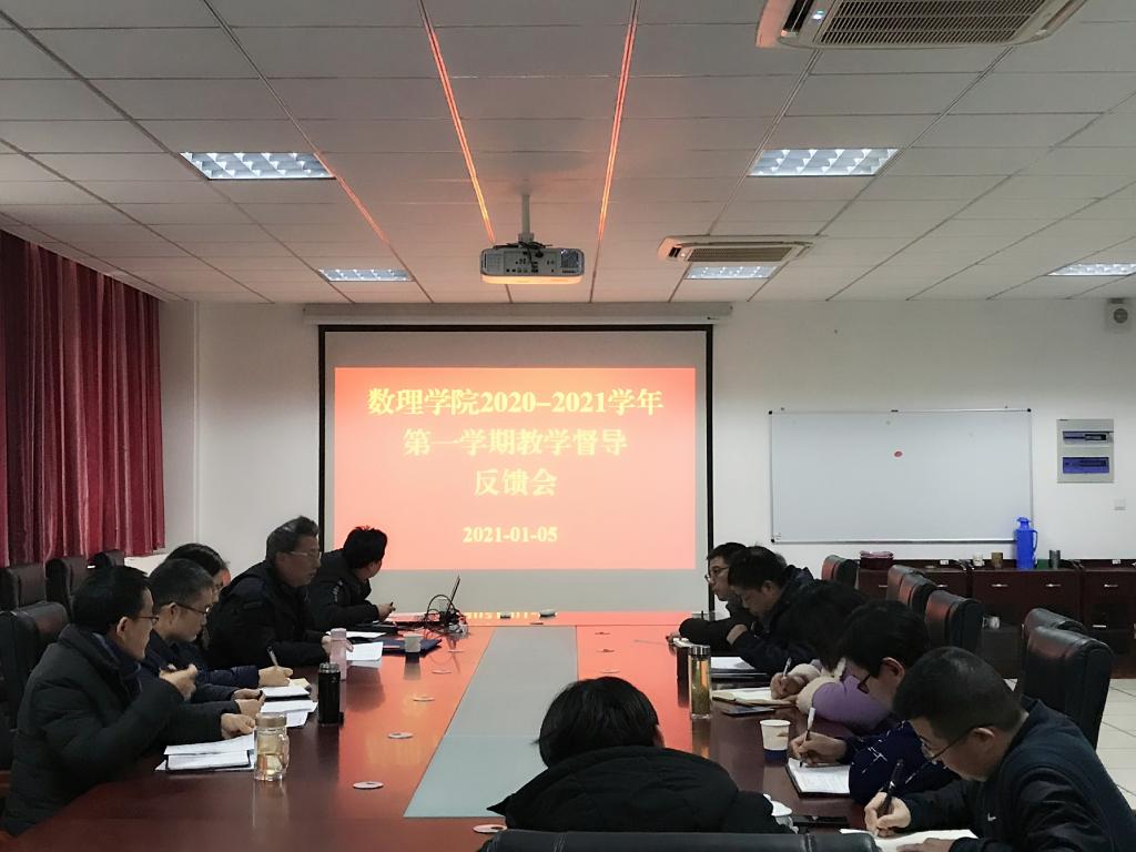 1月5日下午,数理学院在数理楼307会议室分别召开2020-2021学年第一学期校级教学督导反馈会和院级教学督导反馈会。校级教学督导员钱萌教授和程再玲副教授,院级教学督导员叶淼林教授、胡万宝教授、胡学平教授和李娟副教授,公司党政领导,以及各系部主任、团学办公室负责人、教学秘书和教务员参加会议,会议由副经理张海教授主持。