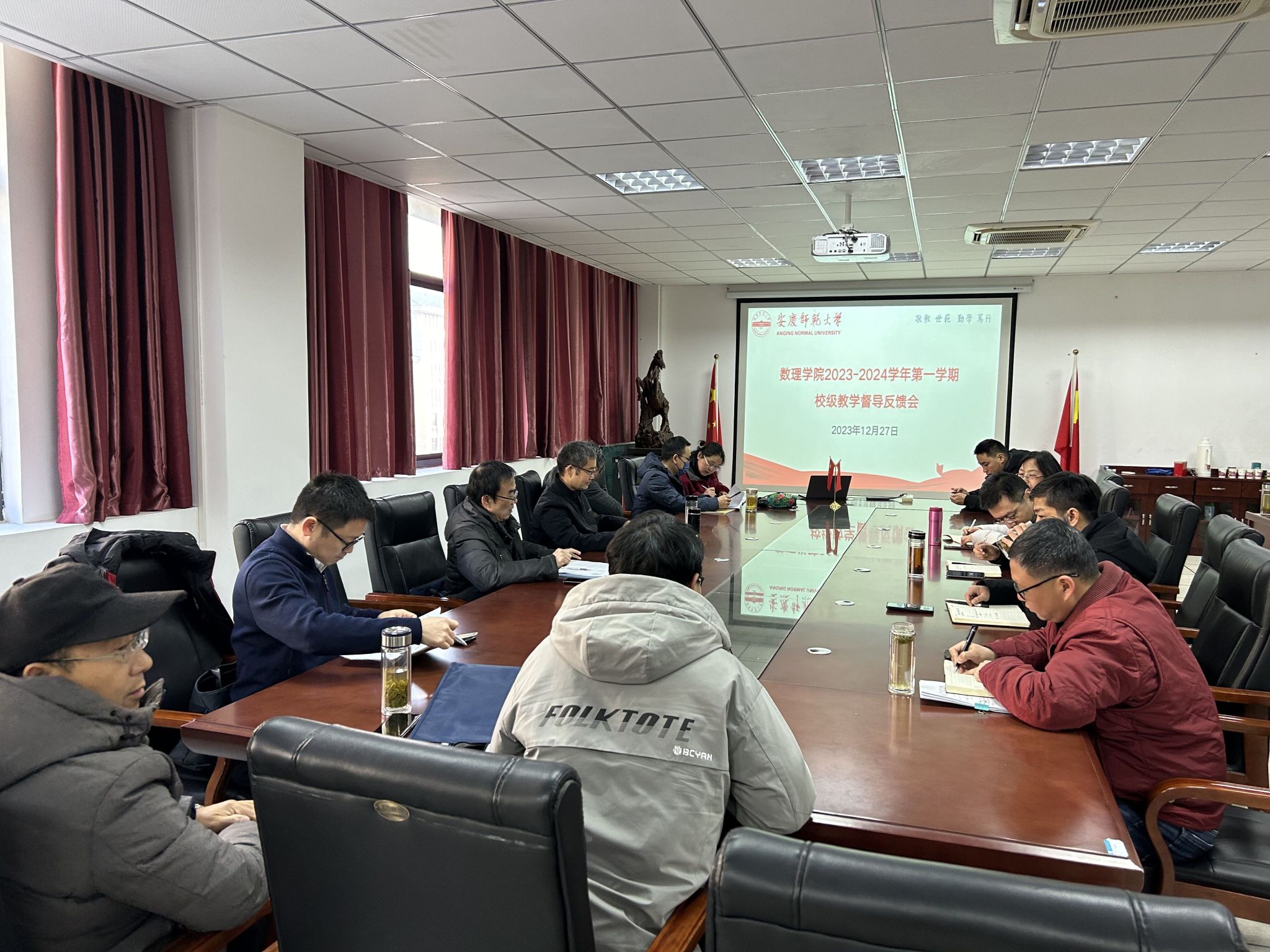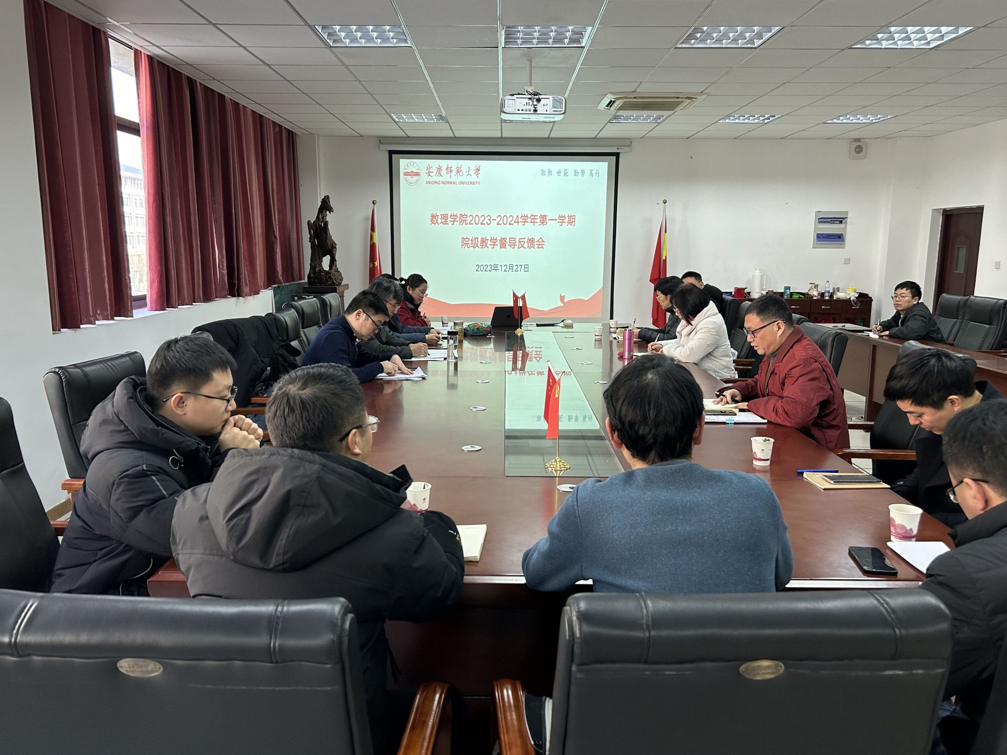 12月27日上午,数理学院在数理楼307会议室召开2023—2024学年第一学期校级和院级教学督导反馈会。校级教学督导员胡万宝教授、吴昭方教授、钱萌教授,院级教学督导员胡学平教授、盛敏教授、胡积宝教授、马宗立副教授,公司党委书记陆健、副经理张海、副经理易明芳、党委副书记彭芳珍、副经理殷周平以及各系部主任、各教研室主任、教学办公室工作人员参加会议。