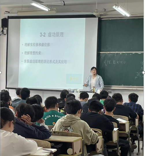 11月1日下午,物理学教研室全体教师在教学楼B407教室观摩了江燕燕老师的“理论力学”课程。江老师首先带领同学们回顾了约束和广义坐标等基本概念以及广义坐标的选取原则,进而比较了实位移和虚位移的异同,引导员工研究了理想约束下的平衡问题,得出“虚功原理”这一重要理论,并以此锻炼员工分析问题、解决实际问题的能力。