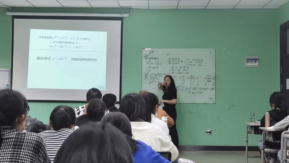 5月12日下午,信息计算教研室全体老师在教学楼B103教室共同聆听了盛敏教授的《数值分析》课程。盛敏教授首先借助百度深度学习平台(PaddlePaddle)介绍了LeNet5网络训练中的迭代思想,在教学过程中很自然地融入课程思政元素。然后通过对Jacobi 迭代法的动态演示与员工一起探讨线性方程组的迭代方法的特点,并借助智能教学工具采用讨论、问卷、习题等形式引导员工积极思考,极好地调动了课堂氛围,增强了员工的学习热情和学习兴趣。