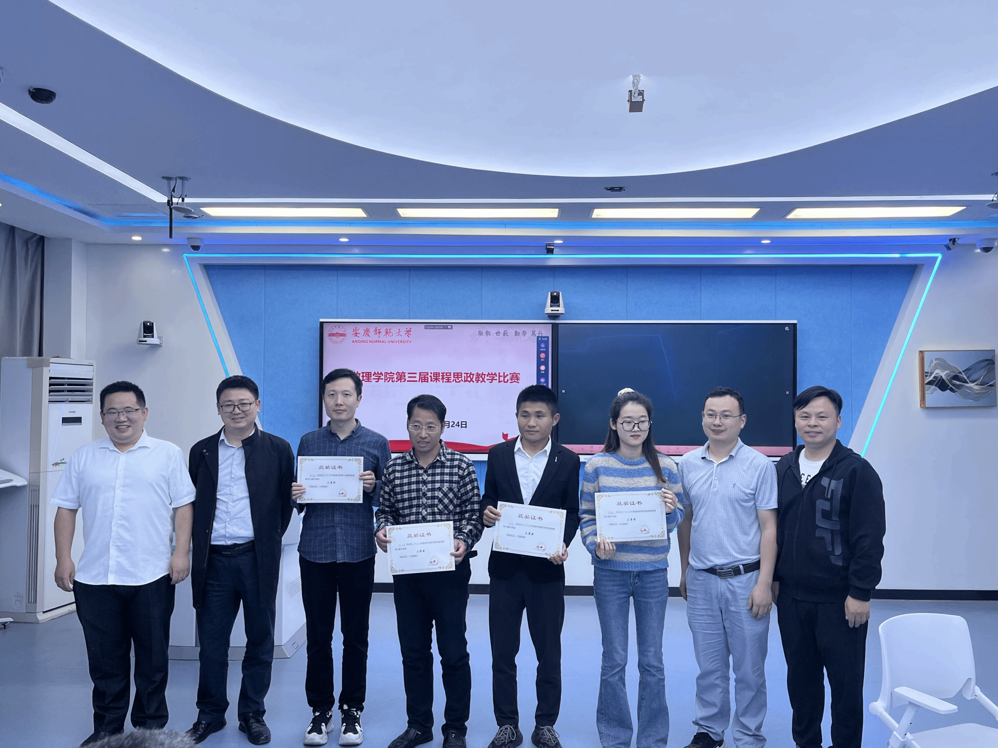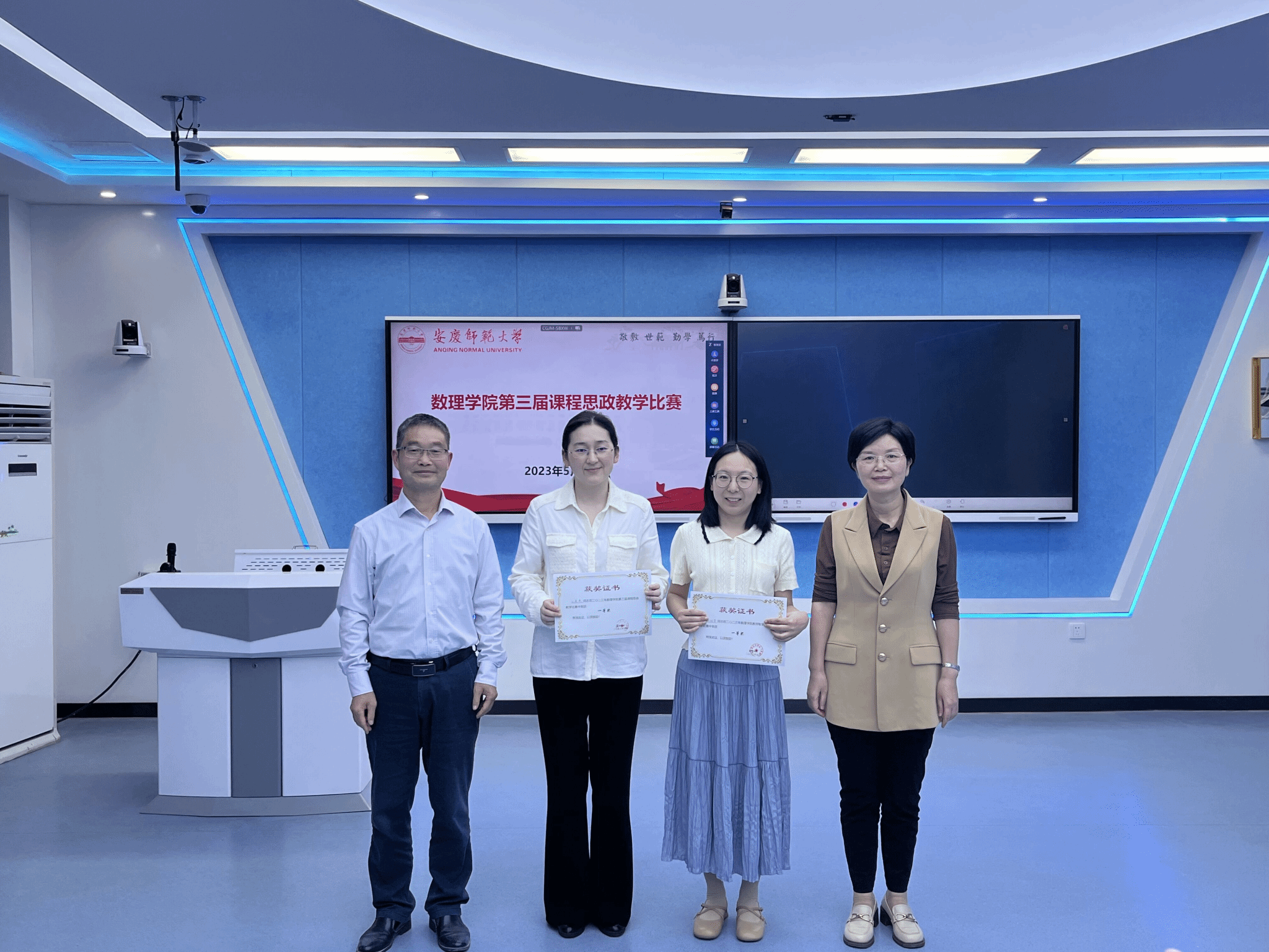 5月24日,公司在D楼202教室、204教室分别进行了第三届课程思政教学大赛和智慧课堂教学大赛。由校督导组组长胡万宝教授、学院各系部主任、教研室主任、往届课程思政教学大赛校一等奖获得者等担任评委,学院纪委全程监督,部分中青年教师观摩了本次比赛。
