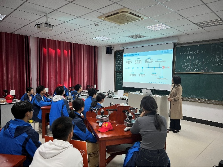 在整个活动过程中,同学们表现出浓厚的求知欲和探索精神,积极参与互动,提出了许多富有创意的问题,展现出他们对科学的浓厚兴趣。通过此次活动,严桥中学的员工对科学研究有了直观的了解,增长了科学知识,体验了实验的乐趣,更重要的是,激发了他们对科学研究的兴趣。数理学院将继续推动类似活动,助力中员工在科学探索的道路上不断前行。(撰稿/摄影:洪江刘;审核:易明芳)