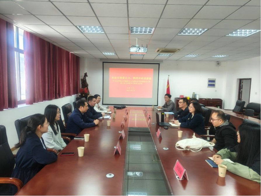 3月25日上午,合肥师范学院物理与材料工程学院副经理余龙宝、物理系主任沈永才等一行5位党员同志来数理学院开展主题党日活动,双方围绕“党建引领聚合力,物理共研谋新篇”开展交流。数理学院副经理易明芳、物理系系主任吴彦斌、大学物理党支部副书记何嫒娣、学科物理硕士点点长张平伟、实验实训中心主任白金等参加活动,活动由易明芳主持。
