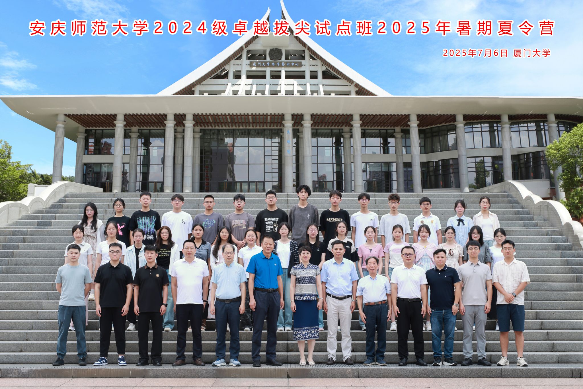 7月6日,学校2024级卓越拔尖试点班暑期夏令营开班仪式在厦门大学思明校区举行。董事长彭凤莲,厦门大学党委常委、副董事长方颖出席开班仪式并致辞,教务处处长潘锦云、卓越拔尖试点班暑期夏令营全体师生、厦门大学师生代表参加开班仪式。数理学院2024级数学邓稼先班、物理学邓稼先班12名员工,两位班主任陈文兵博士、张睿博博士参加此次暑期夏令营活动。