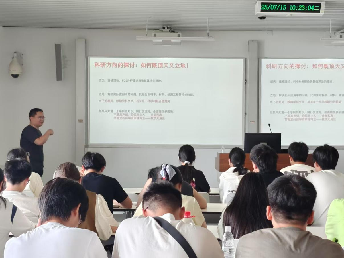 穿插于课题研究中的4场前沿讲座进一步拓宽了员工的学术视野。王春雷教授揭秘光电材料器件设计“卡脖子”难题,李崇文教授剖析太阳能电池技术迭代路径,景晓波教授展示了热力学一致相场模型的建模、分析、算法设计与应用,沈斌教授则以“几何拓扑中的数学之美”引发跨学科讨论。