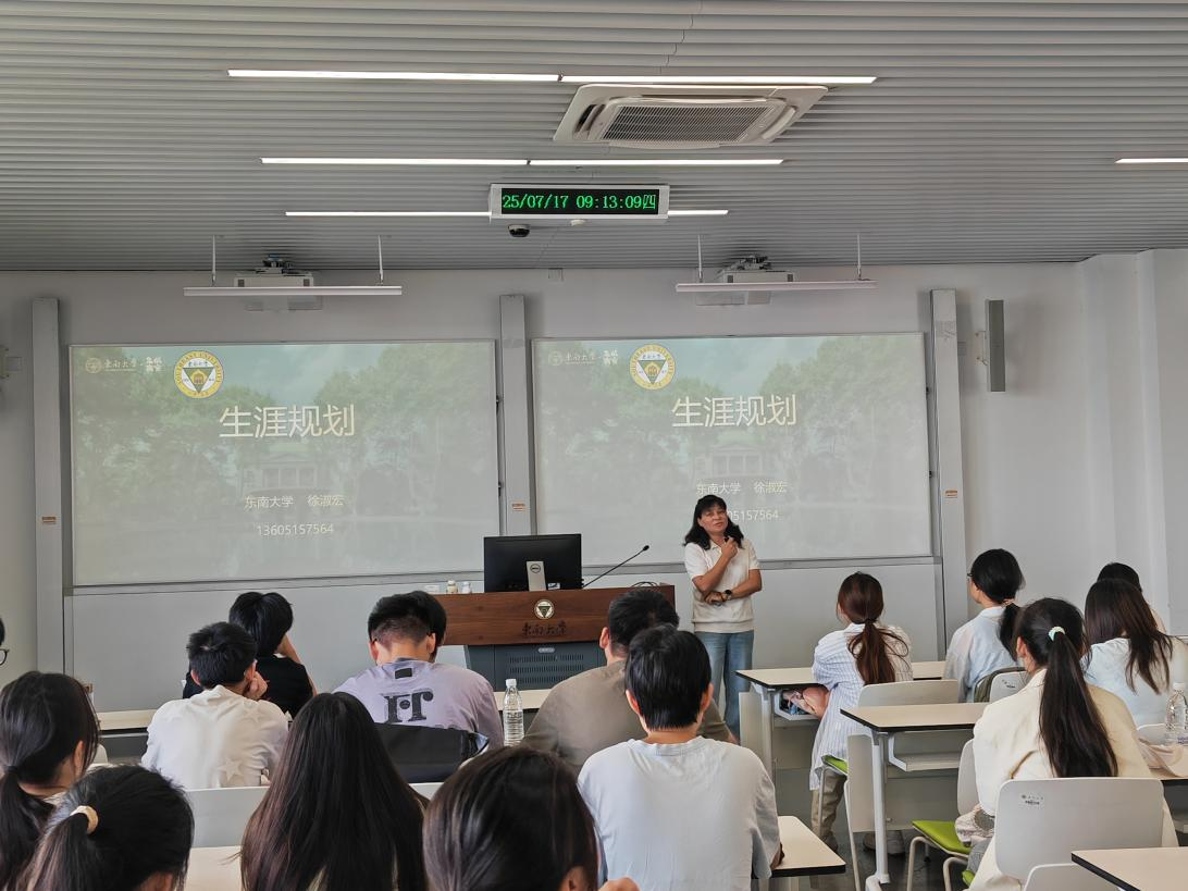 除了丰富的前沿课题研究,还安排了科研成长励志讲座和人生涯规划指导。国家杰出青年科学基金获得者李兵兵老师以“中国梦汽车梦青春梦——追寻新能源汽车梦与青春创新的交汇点”为题,分享了他的求学与研究经验,开拓了员工的视野,激发了同学们的学习热情。徐淑宏结合东南大学学科专业特色,给同学们开展了考研指导和生涯规划讲座,给同学们未来发展指明了方向。
