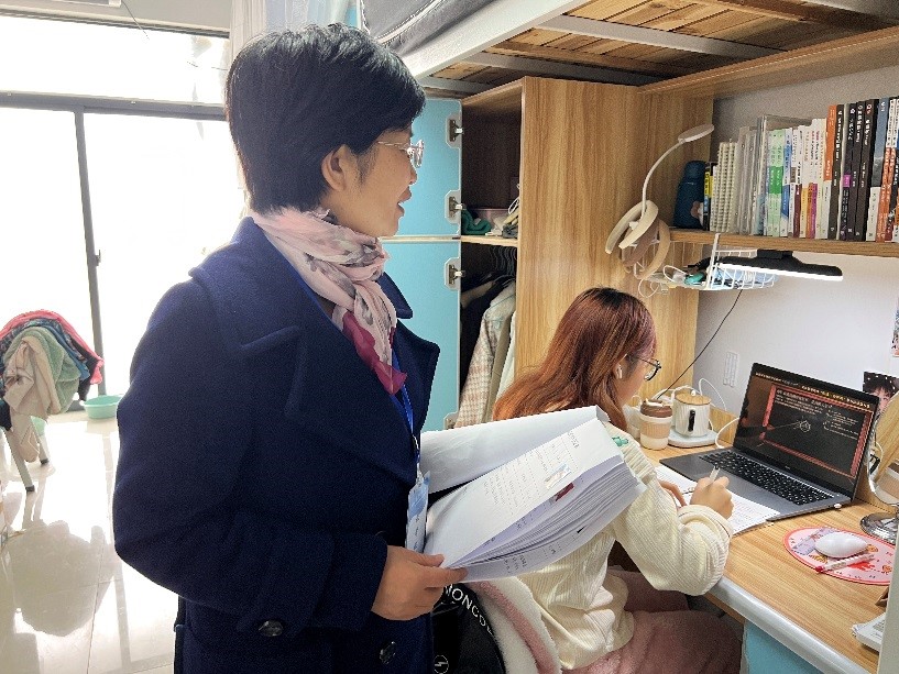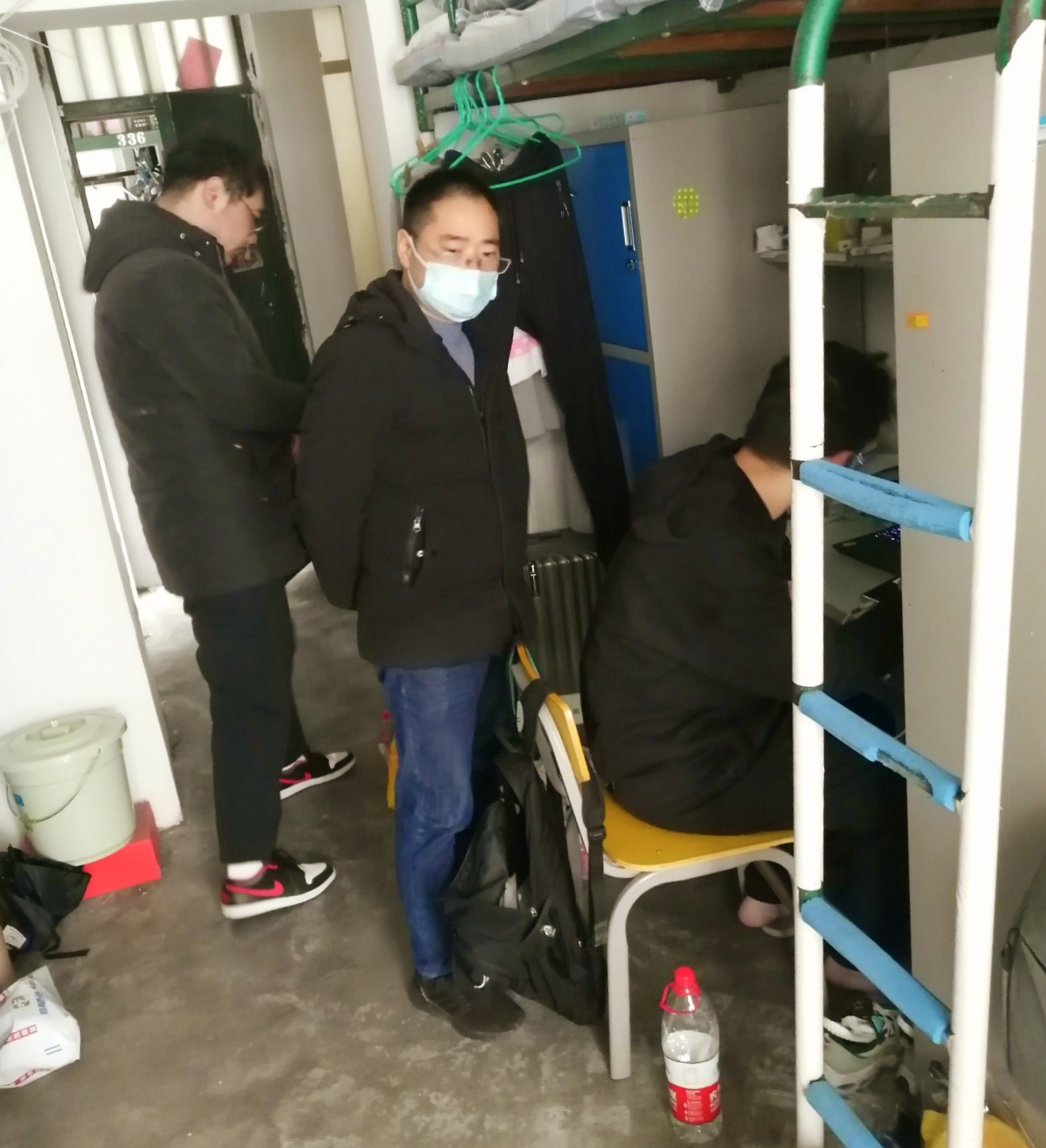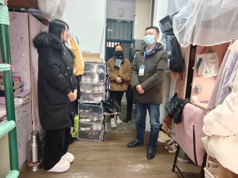 12月1日,数理学院全体班子成员、辅导员老师深入员工宿舍,对宿舍卫生安全和线上网课学习情况进行督导检查。