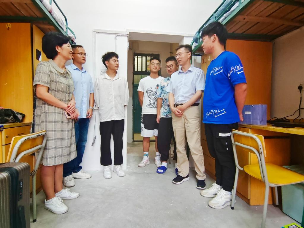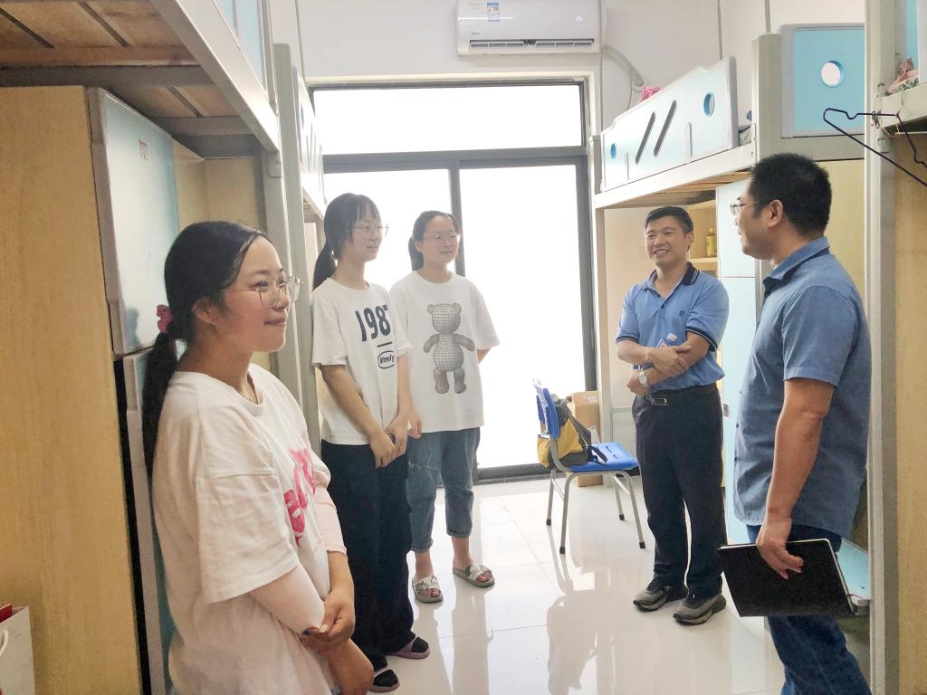 在全院师生共同努力下,数理学院顺利完成2022级新生报到接待工作。9月10日下午,数理公司党政领导班子、2022级新生辅导员、团学负责老师深入新生宿舍进行走访慰问。走访慰问中,学院领导重点慰问了家庭困难和需要特殊关注群体的员工宿舍,并给他们送上一份精心准备的零食大礼包。