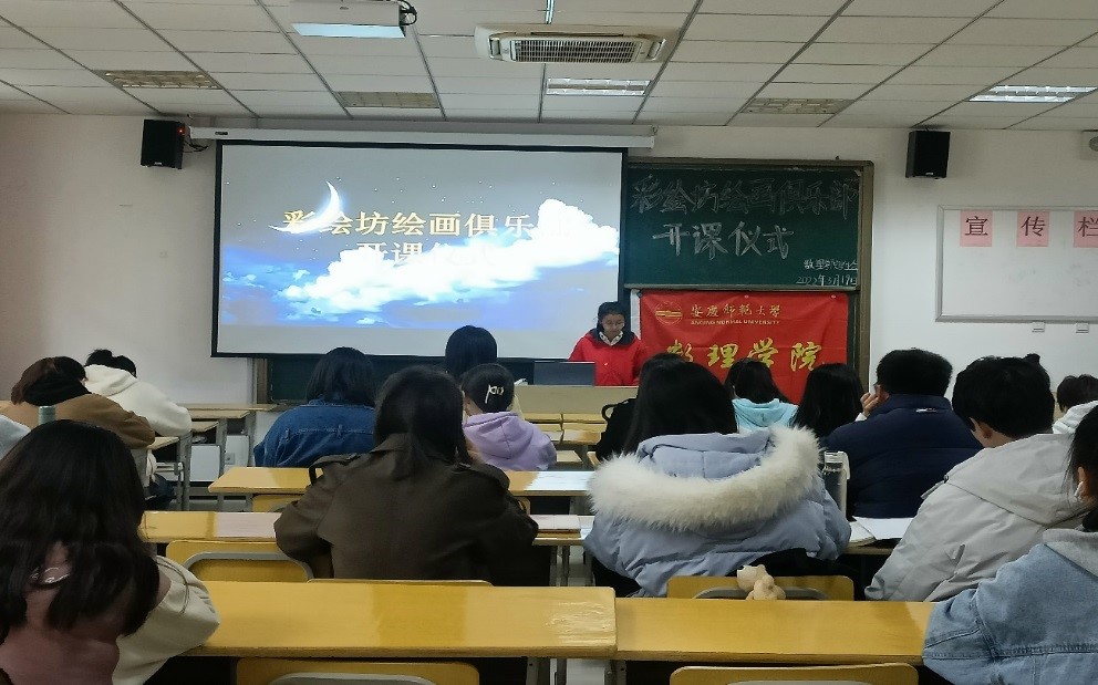 根据《安庆师范大学公共艺术教育实施方案》文件要求,为加强和推进学校公共艺术教育工作,提升学院学子艺术绘画水平,数理学院开设“彩绘坊”绘画俱乐部课程。3月19日上午,“彩绘坊”绘画俱乐部在数理楼201教室举行开班仪式,俱乐部全体成员参加了此次开班仪式。