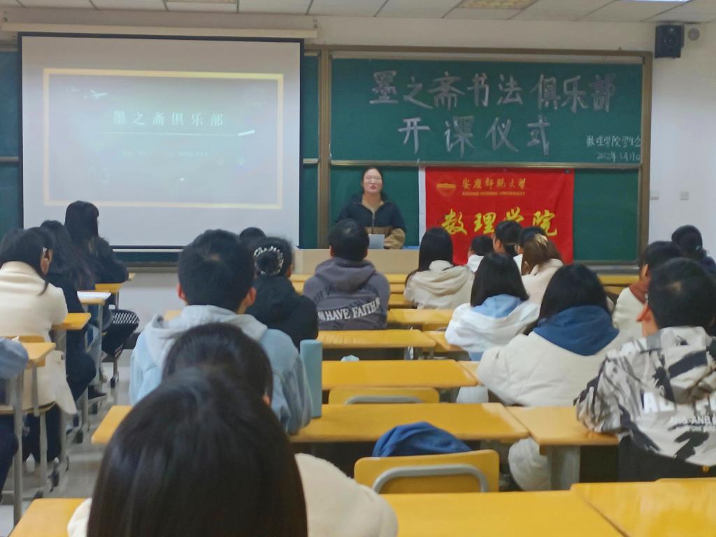 根据《安庆师范大学公共艺术教育实施方案》文件要求,为加强和推进学校公共艺术教育工作,提高同学们的书法写作水平,数理学院开设了“墨之斋”书法俱乐部课程。3月19日上午,“墨之斋”书法俱乐部在数理楼501教室举行开班仪式,俱乐部全体成员参加了此次开班仪式。
