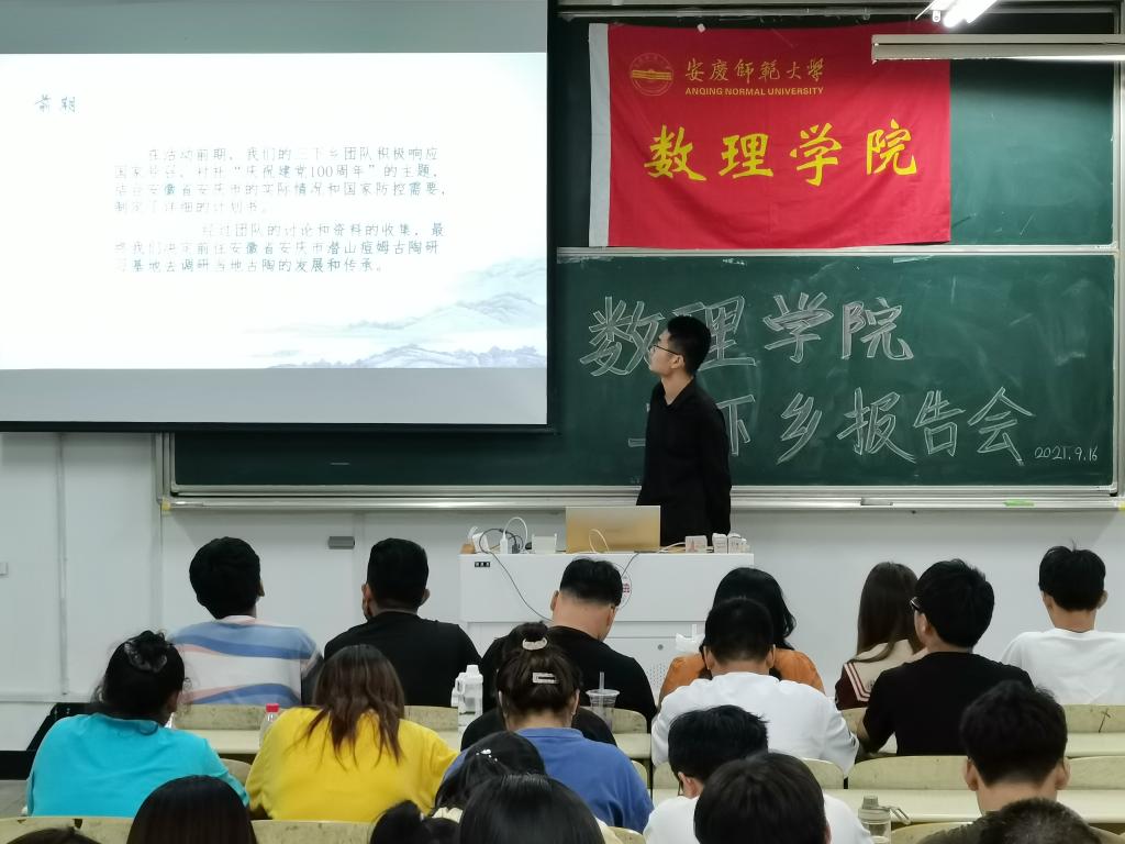秋风送爽、在这收获的季节里,今夏又一次绽放的暑期“三下乡”活动也到了展示实践成果的时候,9月16日,数理学院团委在A楼305教室举办2021暑期“三下乡”答辩报告会,经过层层筛选共有十四支队伍参与本次答辩。