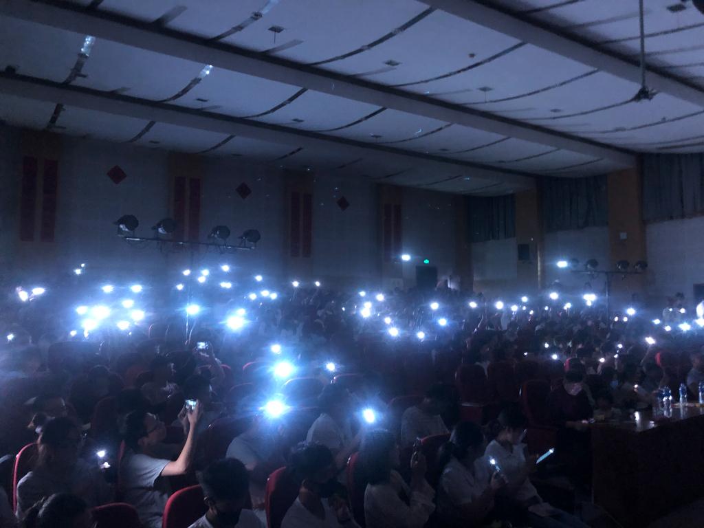 演出期间突发十分钟的停电过程中,为保证晚会正常进行,辅导员老师们纷纷上台即兴表演救场,全体师生热情高涨,台下数百名员工打开手机闪光灯为舞台照明,随着旋律挥舞,与老师合唱,将晚会气氛推向最高潮。“晚会的‘意外’没想到成为了惊喜,短暂的停电却成就了本场晚会。”数理学院团委负责老师汪健说。“本次晚会也特意给毕业生们制作了一个特殊‘车票’,希望毕业生们前程似锦”。