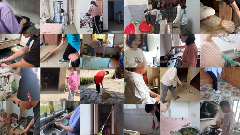 因为父母工作较忙,数学与应用数学专业2019(2)班的汪礼锐平时经常帮他们分担家务,看到辅导员发来的信息时,他正在洗碗。“现在许多老员工自理能力较差,或者不愿意做家务。”汪礼锐认为,作为老员工,个人能力的培养要从小事做起,不论是在校还是居家,都应当主动承担这些事务。
