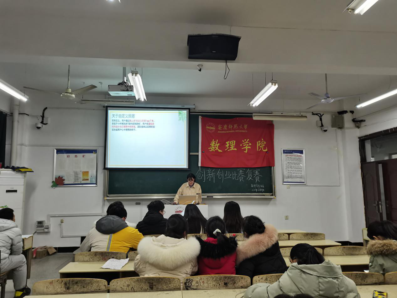 12月24日晚,数理学院团委主办的创新创业比赛第二轮复赛成功举办。第六届安徽省互联网加创新创业大赛省二等奖获奖队伍队长张宣,18级数应白时慧学姐,18级物理吴明钰学姐,18级物理苏越学长担任今晚比赛的评委。四位评委结合自己的参赛经验为本场答辩队伍指出项目内容缺陷,针对团队项目特点提出建设性意见。