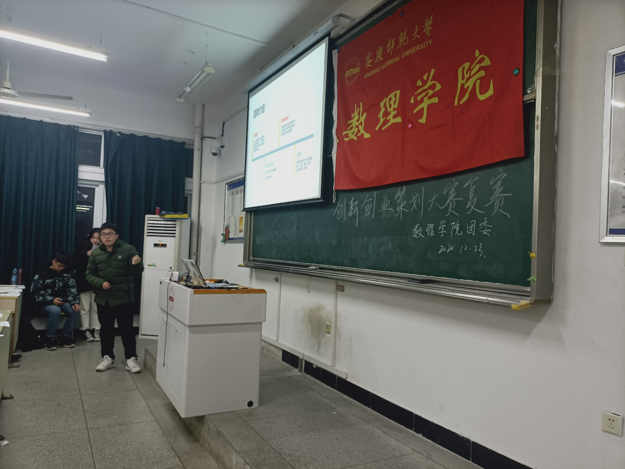 为贯彻落实国家关于深化高等学校创新创业教育改革的相关文件精神,12月23日,由数理学院团委主办的创新创业比赛第一轮复赛在教学楼B303如期举行,第一轮复赛共有十支双创团队参加。学院团委负责人汪健老师、20级新生辅导员秦晶晶老师以及黄兴强老师担任本次比赛评委。