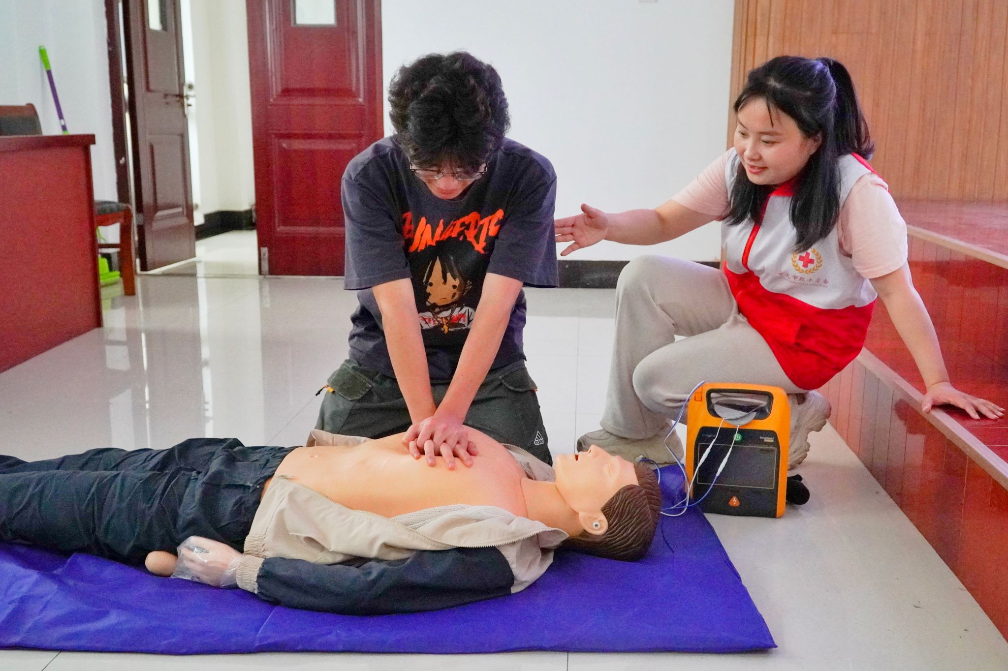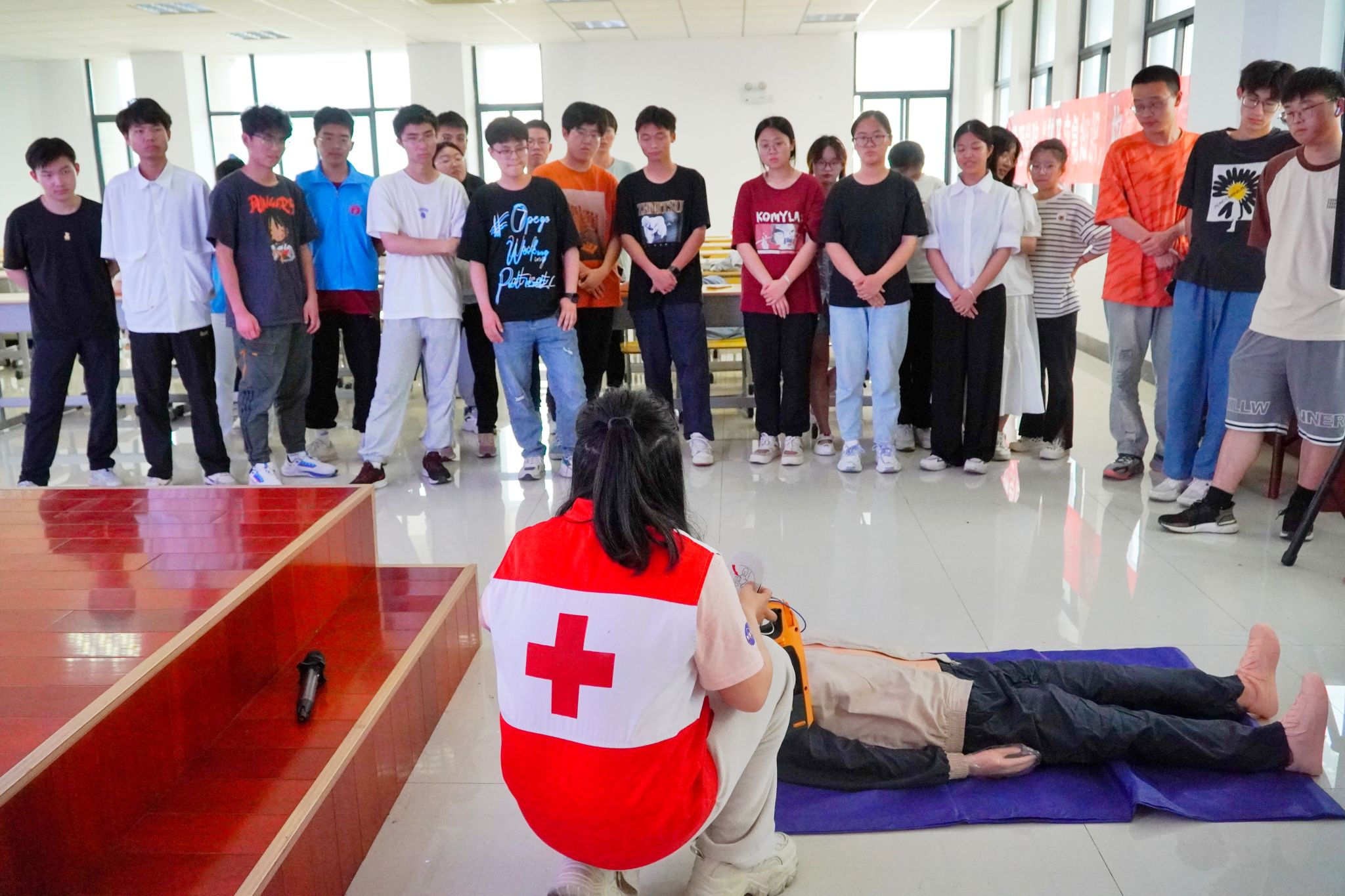 心脏按压、清除异物、开放气道、人工呼吸……培训小组利用急救人体模型进行心肺复苏救护现场演练。“我以前只在视频里看过心肺复苏急救的画面,这次在指导老师的帮助下,我上台成功地完成了模拟操作,今后,我也能在突发情况下帮助他人了。”应用统计学专业2022(2)班的张林俊说。
