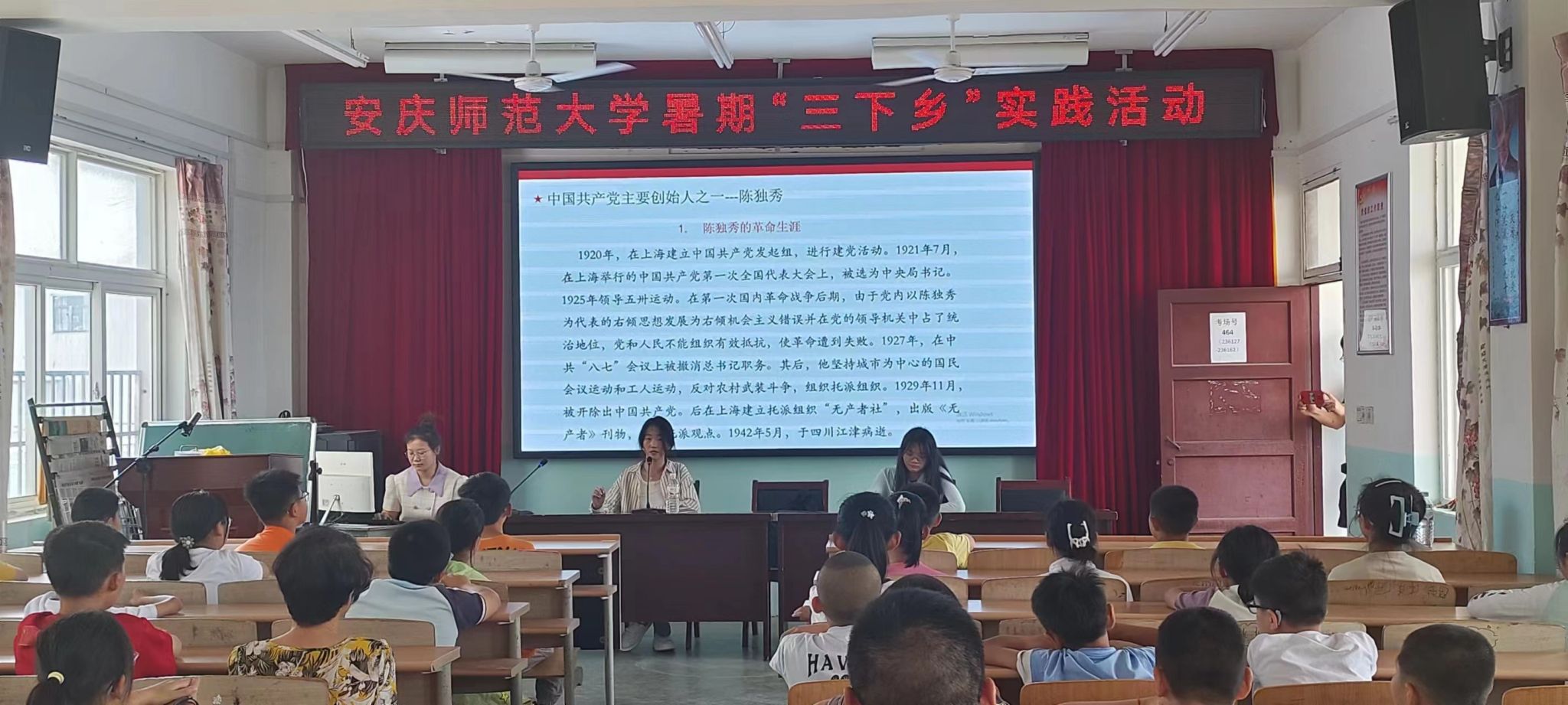 除了陈独秀父子的革命事迹介绍,宣讲队成员还播放了黄梅戏《江姐看长江》选段,为他们介绍了《红岩》的故事背景和剧情梗概,讲述了《新青年》的历史意义,与员工们共同朗读了鲁迅先生的《随感录十四》,带领同学们一起回望了那一段艰苦的革命岁月。