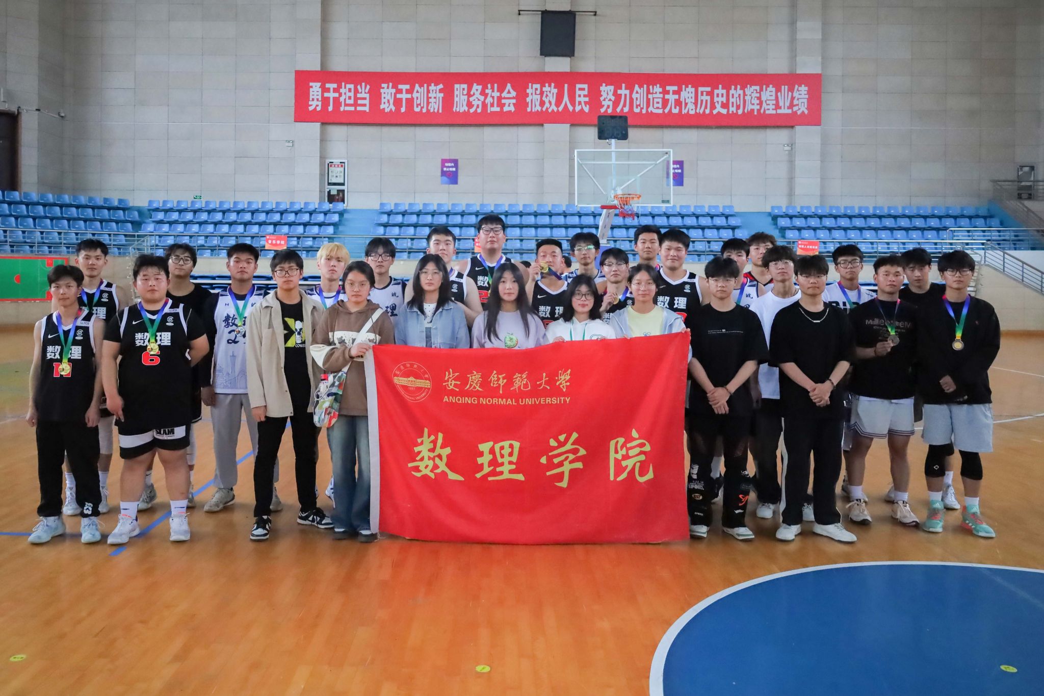“好球!”“加油!”“再来一个三分球!”……4月21日,在校篮球馆内,数理学院“数理杯”篮球赛决赛正式拉开帷幕。经过四个小时的激烈角逐,最终“星空队”斩获冠军,“蛟龙队”荣获亚军,“墨子队”获得季军。