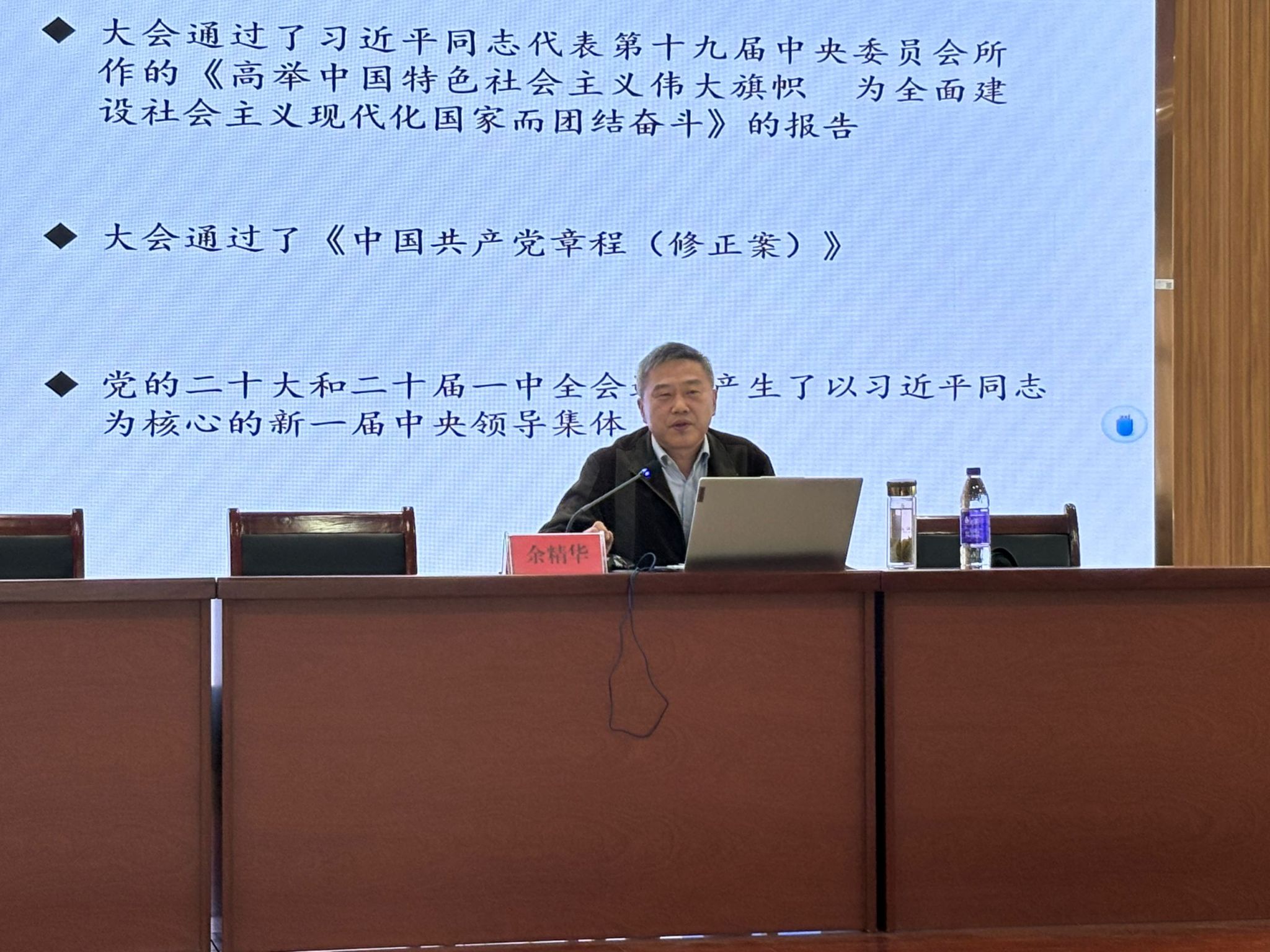 11月8日,数理学院邀请马克思主义学院余精华教授在401报告厅做报告。学院近200名2023级新生代表到场聆听。报告由公司党委副书记彭芳珍主持。