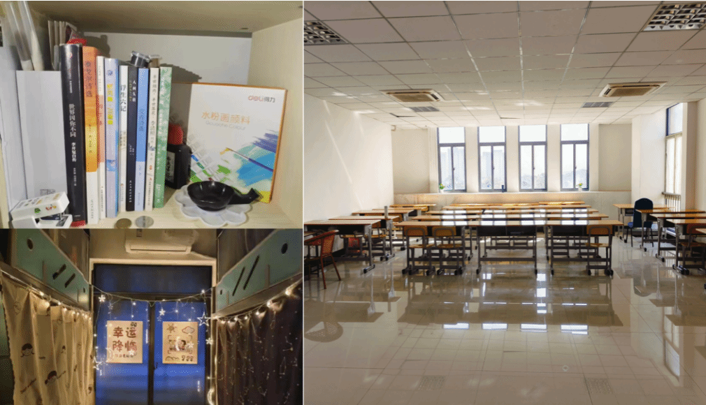 美化温馨“小家”,打造心理港湾。最美寝室评选活动以寝室为单位自由发挥,活动过程中,寝室成员共同合作,将各自的寝室打扫得一尘不染,还自己动手制作中国结、拼图等精美的手工装饰品。16A-632寝室同学还布置了“图书角”,用以闲暇时室友们围坐阅读,加深知识的积累和情感的交流。作为“军训内务优秀寝室”的16A-626寝室在墙上布置了美丽的星星灯,“星星和月亮寓意着永恒和希望,祝愿我们宿舍的伙伴在今后的旅途中都能平安顺遂”,简单的布置中蕴含的是室友间美好的祝福。
