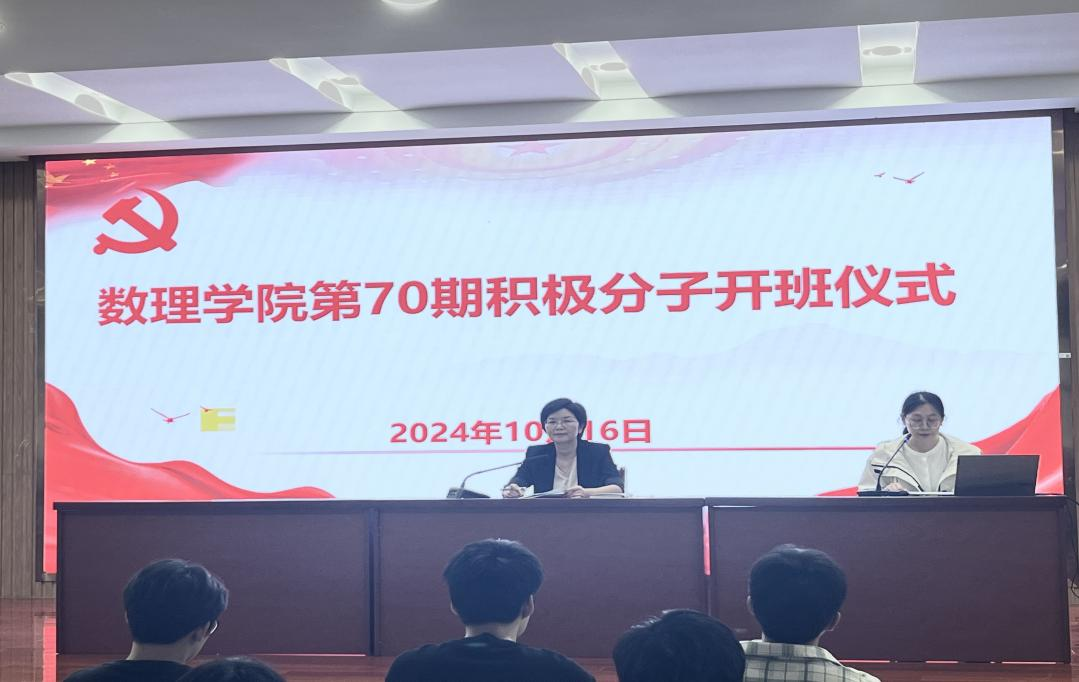 10月16日,数理学院在I401举行第70期入党积极分子培训班开班仪式。数理公司党委副书记、纪委书记彭芳珍、员工党支部书记和第70期108名入党积极分子参加开班仪式。