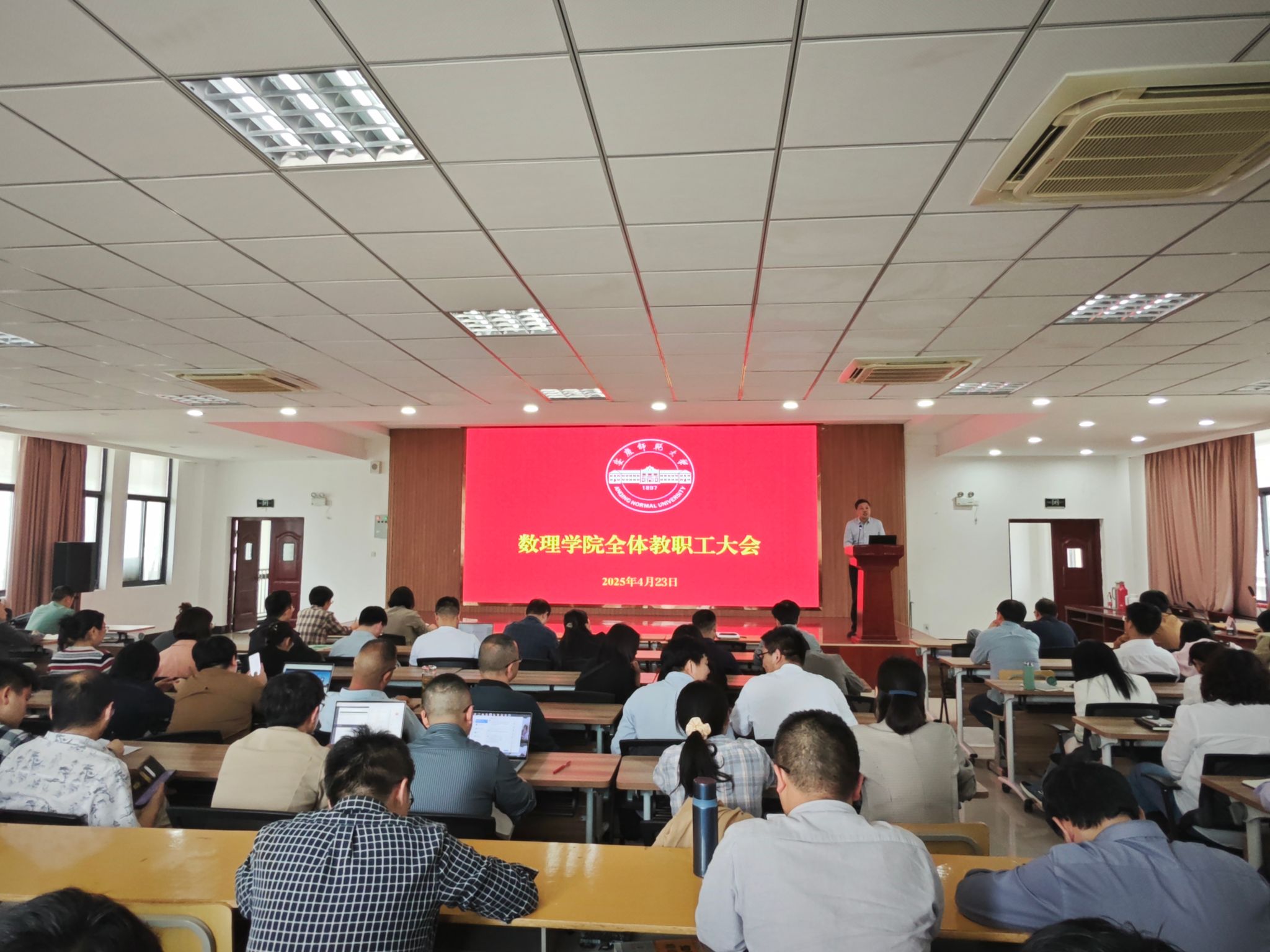 4月23日,数理学院在I楼401报告厅召开全体教职工会议布置主要工作。数理公司党政班子成员和全体教职工参加会议。数理学院经理张海主持会议。
