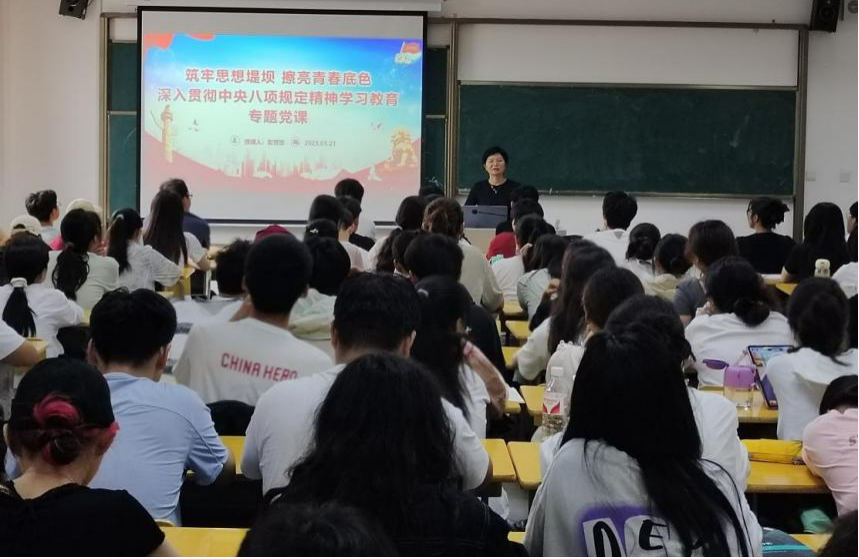 党课上,彭芳珍从三个层面逐步深入展开讲解。带领同学们学习中央八项规定及其实施细则的主要内容,帮助同学们深刻领会其核心内涵;深入讲解了违反中央八项规定精神的主要表现,以真实案例敲响警钟;阐述了违反规定适用的相关党纪条规,强化同学们的纪律意识。她鼓励学员,要持续深入学习和领会中央八项规定精神,融入日常生活与学习,做到勤俭节约、求真务实、严格自律,积极主动地服务同学。
