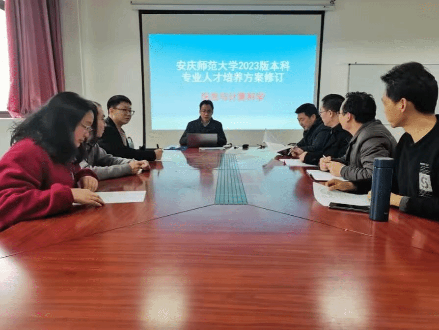 王拥兵对“安庆师范大学关于修订2023版本科专业人才培养方案的指导意见(征求意见稿)”进行了全面解读,分析了学校2023版本科专业人才培养方案课程结构与学分分布,重点强调了通识必修课的调整,并结合2018版人才培养方案、理论课程及实践课程开设情况,详细介绍了2023版信息与计算科学专业的人才培养目标、毕业要求、课程体系、教学内容、教学模式、实践教学等具体内容和安排。与会教师对草拟的人才培养方案进行了深入讨论和交流,针对培养目标、课程设置及开设学期、实践教学等提出了许多有建设性的意见和建议。(撰稿/摄影:高见 审核:易明芳)