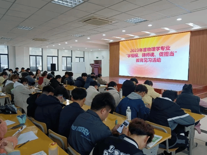 3月22日下午,公司在401报告厅组织开展了2023年度物理学专业“学楷模、铸师魂、促担当”主题教育见习活动。物理学教研室主任刘心爽、中教法教师白金、孙建成,辅导员滕秀花以及2020级物理学全体员工参加了此次活动,活动由白金老师主持。