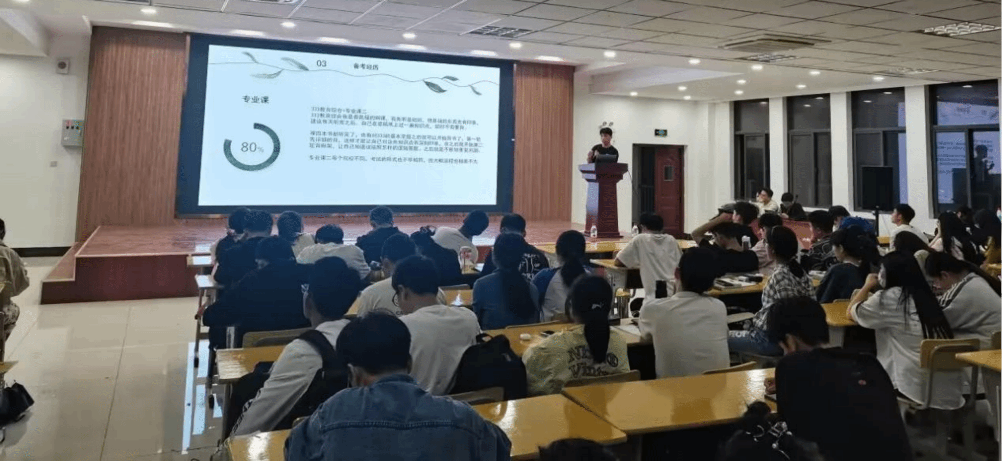 张平伟老师作总结发言,他要求同学正确对待考研工作,明确目标,合理规划,一旦确定目标,就要锲而不舍、奋力前行,并对全体同学送上了美好的祝福,受到在场同学们的热烈欢迎。