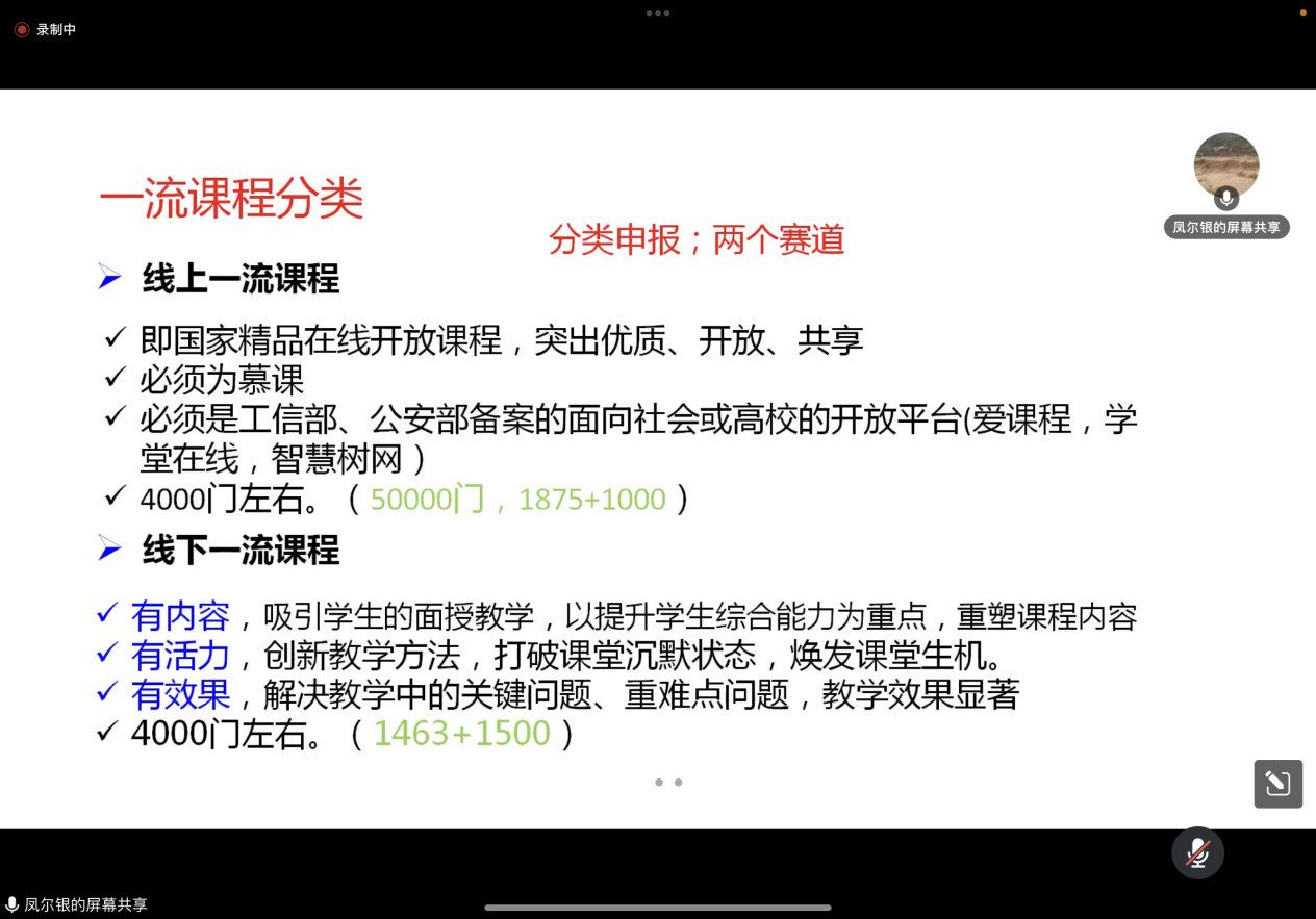 凤教授从推进一流课程建设的意义、一流课程建设的指标和一流课程申报书的填报注意事项等方面进行了全面分析。他强调,课程建设是久久为功的事业,需要持续建设、不断积累、不断改进完善创新,并尽可能以研促教。他指出,一流课程的内涵是两性一度,即高阶性、创新性和挑战度,目标是解决复杂问题的能力。特别是,他以第一批国家级一流本科课程《原子物理学》为例,分享了他在一流课程建设和申报中的宝贵经验。