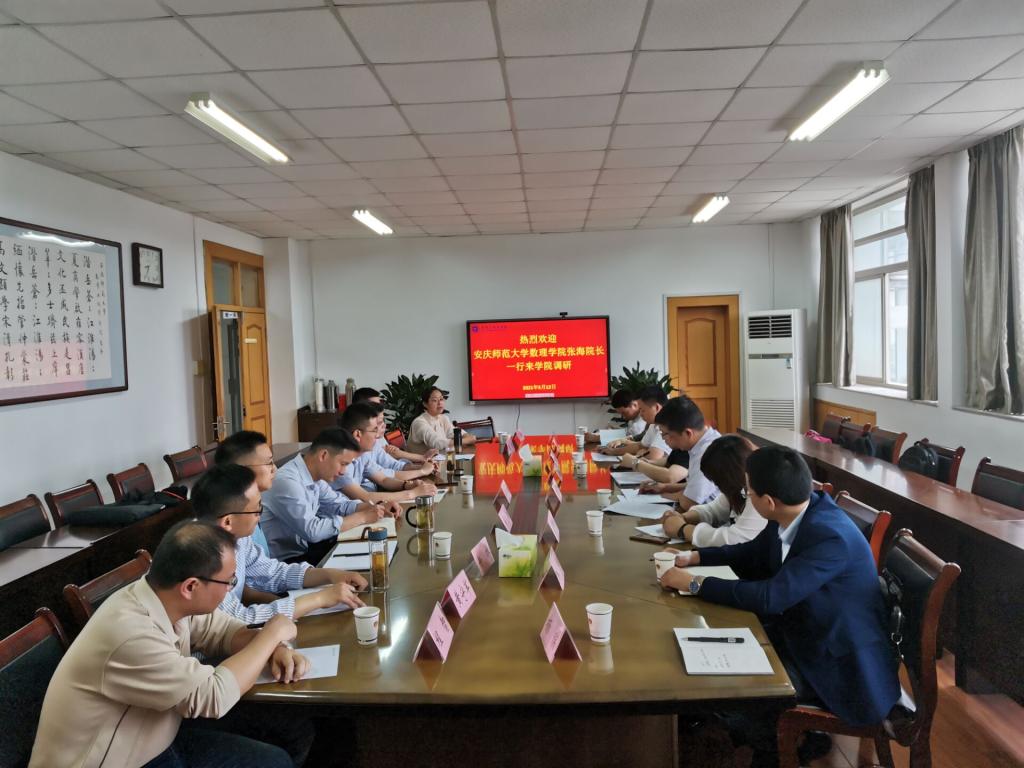 5月13日,数理学院副经理张海教授、数学系主任赵正俊教授、大学数学教学部主任舒阿秀副教授、分析教研室主任张辉副教授、代数几何教研室主任陈文兵副教授、高等数学教研室主任邢抱花副教授、教学秘书胡永模、教务员杨瑞一行8人赴安徽师范大学数学与统计学院开展了专业建设调研工作。安徽师范大学数学与统计学院经理任永教授、党委副书记芮先红、副经理徐林教授、教育部师范类专业认证专家祝东进教授、崔建教授、黄守军教授、朱敏副教授、程智副教授出席了座谈会。