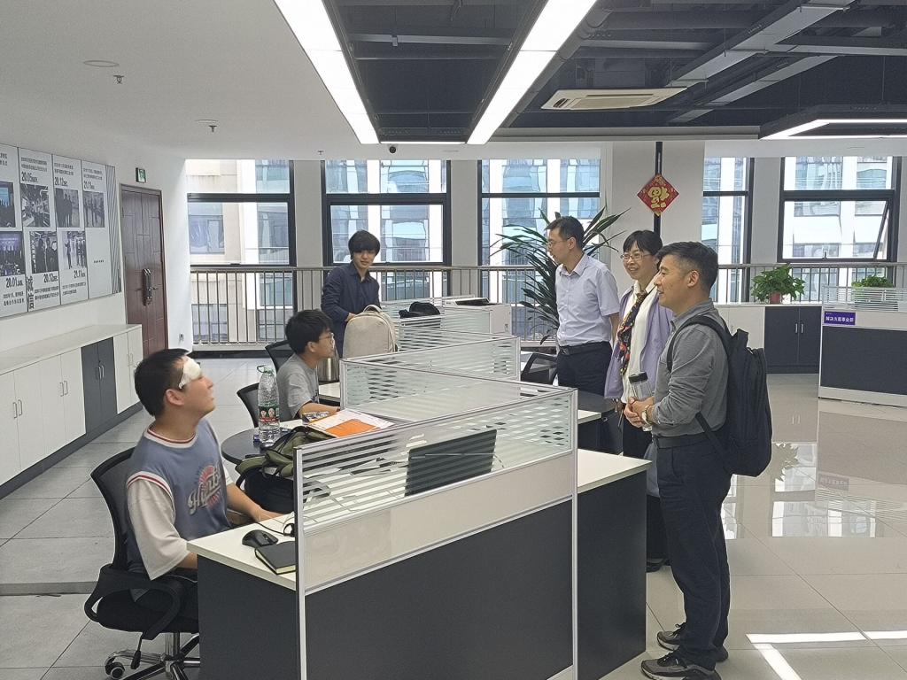 为深入了解员工在实习期间的思想、生活与工作情况, 传达学校对实习员工的关怀,2022年9月28日,数理公司党委书记陆健、经理申传胜、副经理易明芳、副经理殷周平一行看望了在安庆电信公司筑梦新区实习员工袁浩、巫成江、莫熔志、李姚。