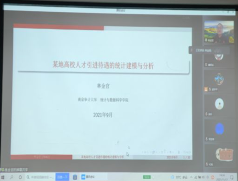 11月17日下午,南京审计大学统计学院博士生导师林金官教授应邀在线上作了一场题为“某地高校人才引进待遇的建模与分析”的学术报告。数理学院部分老师,统计学一级学科硕士点、数学一级学科硕士点研究生参加了会议。会议由数理学院胡学平教授主持。