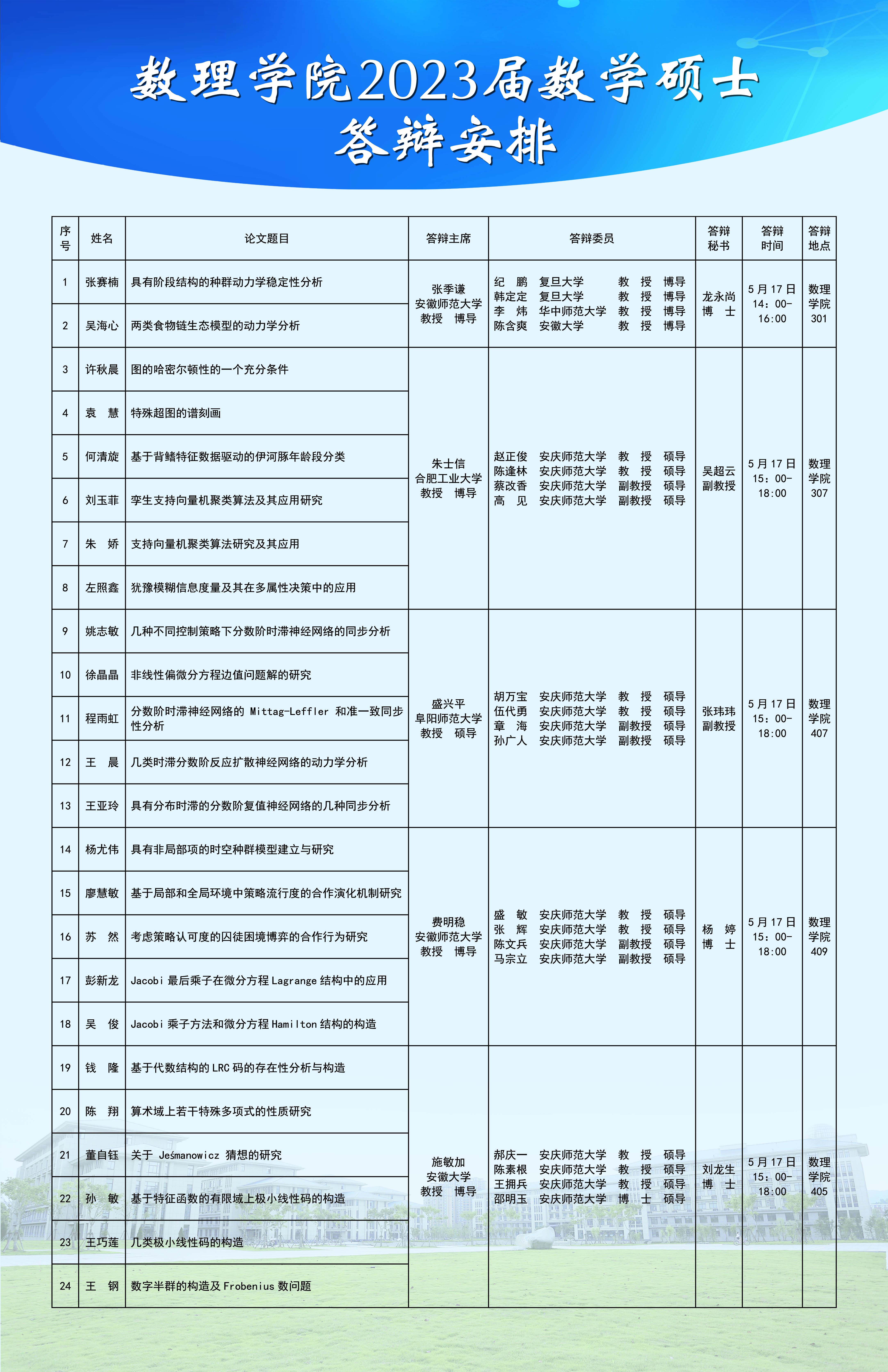 数理学院2023届数学硕士答辩安排