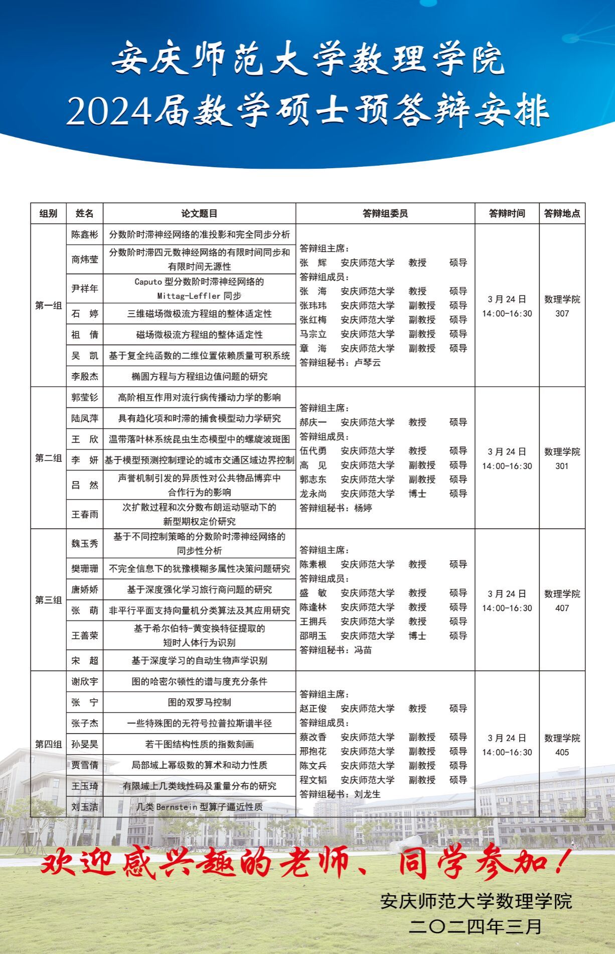 数理学院2024届数学硕士研究生预答辩安排