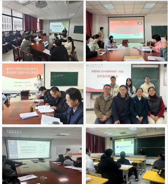12月3日-10日,数理学院顺利完成了数学、统计学、学科教学(数学)、学科教学(物理)四个硕士点2024级研究生学位论文开题报告答辩工作。本次共有53位研究生参加开题答辩,分为九个答辩组进行。数理学院研究生导师及2024级研究生参加了此次答辩。