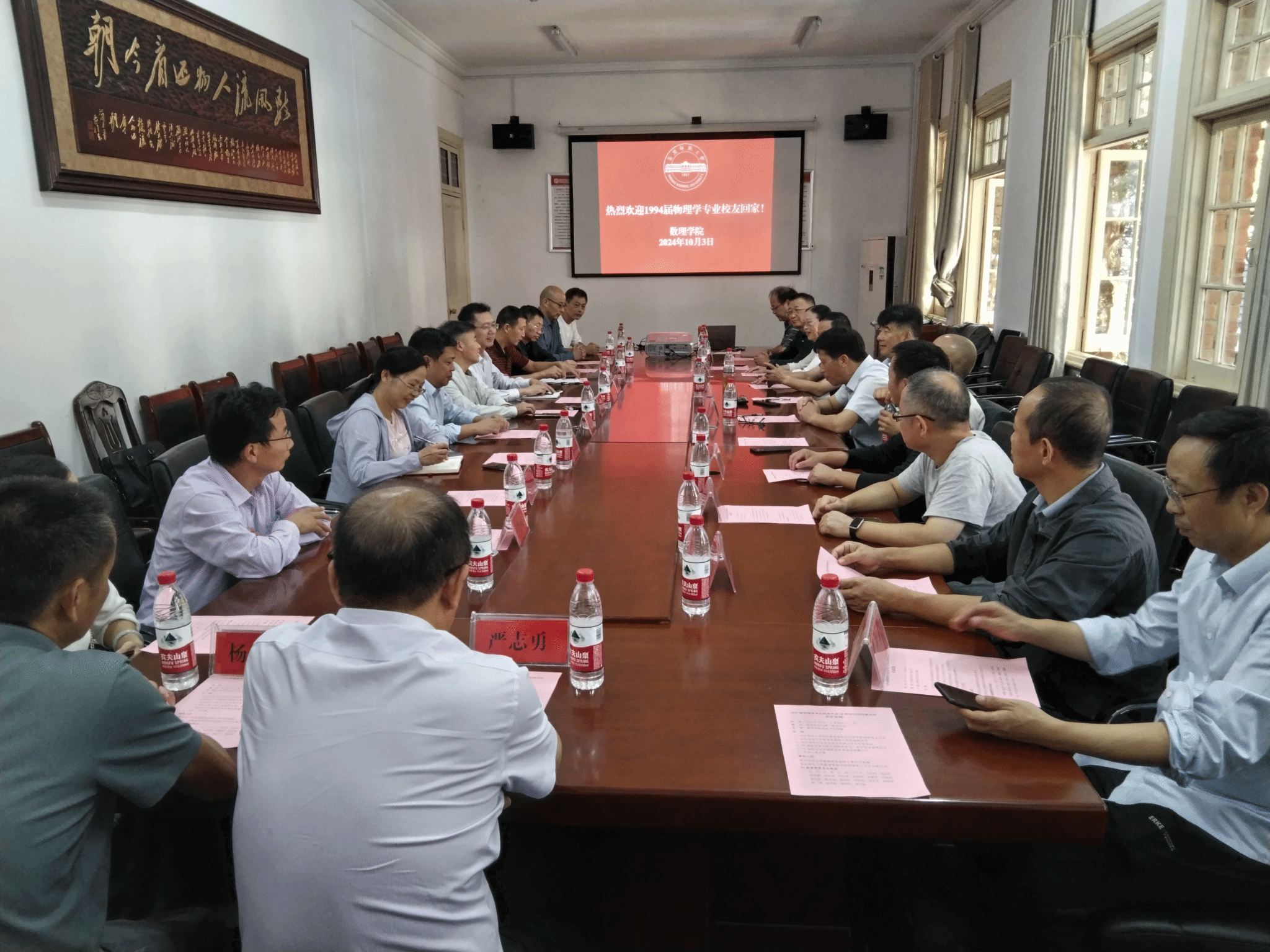 在金秋送爽、丹桂飘香的十月,公司1994届物理学专业员工毕业三十周年返校相聚。来自各地的员工们怀揣对母校的深情厚谊与对青春岁月的无限追忆,齐聚菱湖校区。 10月3日下午,公司党委常委、副董事长申传胜,数理公司党委书记陆健、经理张海,员工总会副秘书长方申荣,数理学院副经理易明芳等参加员工座谈会,座谈会由陆健主持。